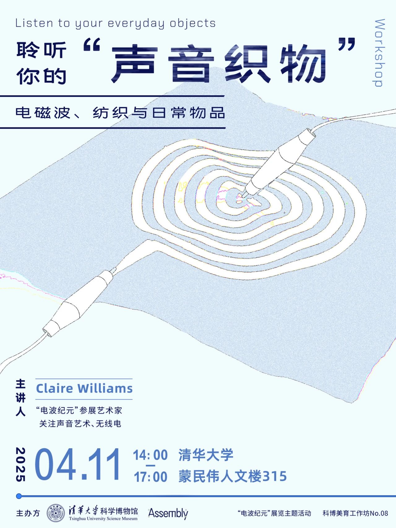 这场有关于科技与艺术的实践将延伸至工作坊现场,Claire Williams将带领参与者一同探索如何通过天线和自制电路来聆听不可见的世界。这些电子天线可以让我们将周围电子设备发出的电磁波转换为声音,并尝试将日常物品改造成探测装置。在这里,我们将寻找那些藏在旧物和日常褶皱中的电磁痕迹。