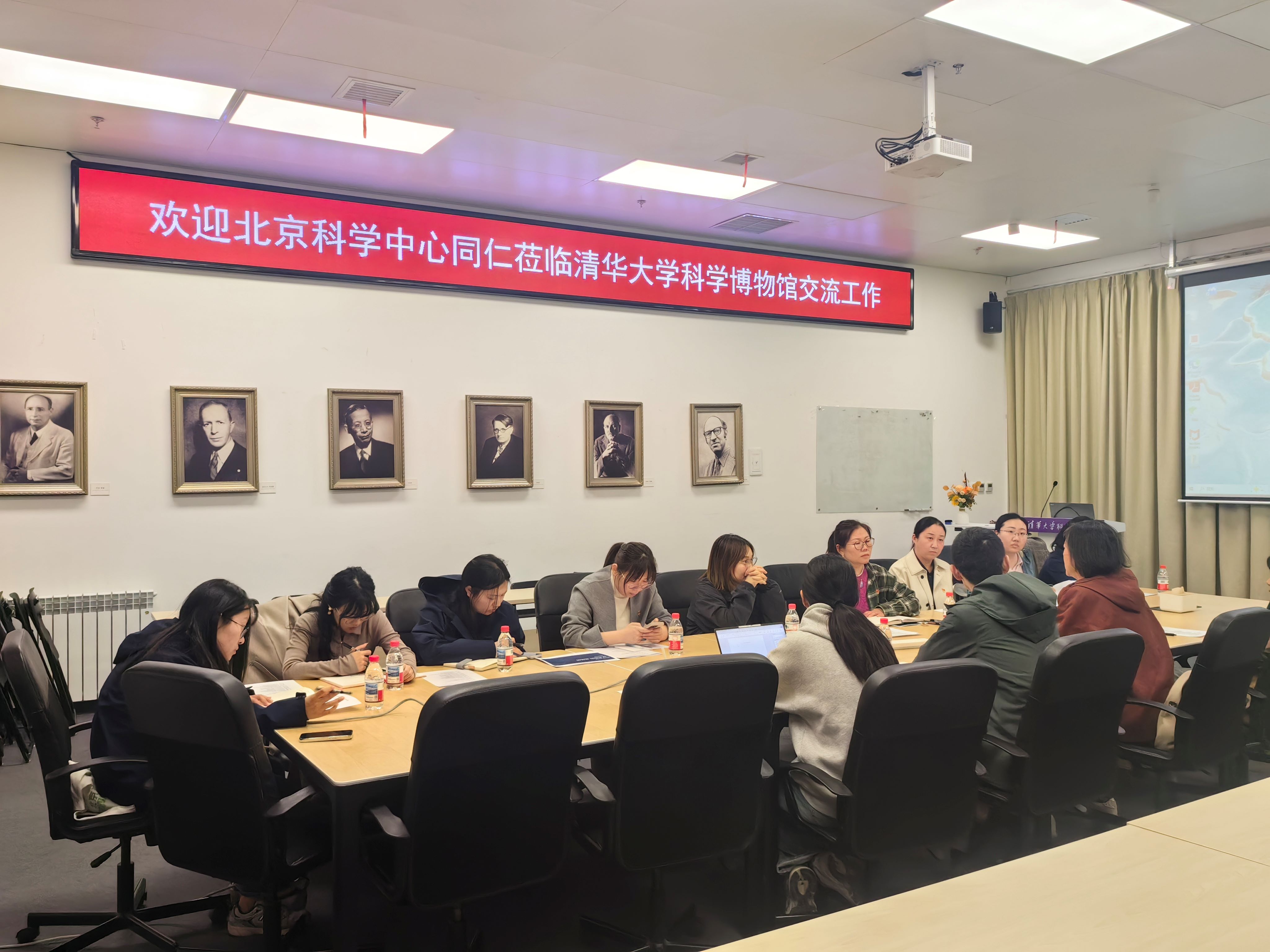2025年4月14日下午,北京科学中心副主任刘然、品牌发展部部长陈晨、青少年科教活动部部长李佳熹等一行9人到访清华大学科学博物馆,就联合举办科学教育主题展览事宜开展交流座谈,并参观科博展览,开展党建活动。