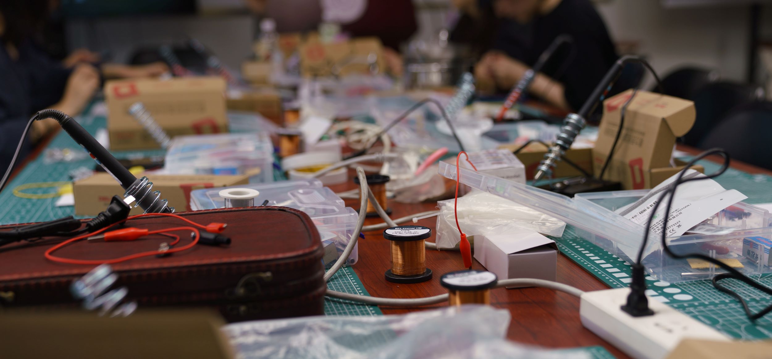 在动手制作阶段,参与者们利用预先准备的雨伞、手提箱、树枝等物品和自然物结合自制电路,尝试将这些日常物品改造成能探测电磁波的装置。完成制作后进入成品体验环节。参与者借助自制装置,听到从改造物品中传出的电台内容或白噪声,随后进行互动体验,大家彼此交换装置,或继续深化改造。此次工作坊使参与者在结合无线电技术知识分享的同时,亦是一次使技术回归生活实践的艺术体验。