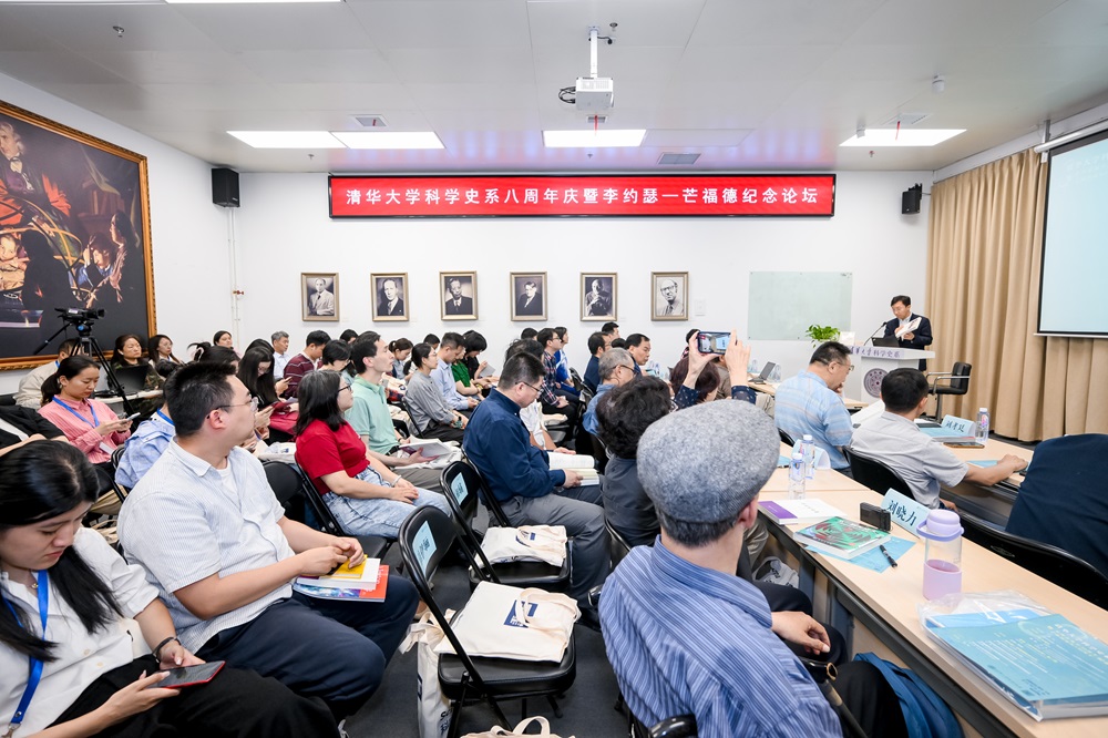 2025年5月16日下午,清华大学科学史系八周年庆暨“李约瑟逝世30周年·芒福德诞辰130周年”纪念论坛在清华大学蒙民伟人文楼举行。中国科学院自然科学史研究所原所长、研究员刘钝,北京师范大学教授刘孝廷,中国科学院大学教授汪前进、刘晓,中国人民大学教授刘晓力、副教授王小伟,科学出版社科学人文分社社长侯俊琳,中国科学院自然科学史所研究员方在庆、姚大志,中国社会科学院研究员孟强、副研究员李文靖,首都师范大学教授尹晓冬、讲师乔宇,北京大学助理教授马大年(Daniele Macuglia),北京科技大学副教授宋元明以及科学史系师生、系友、退休教师等共六十余人出席了会议。