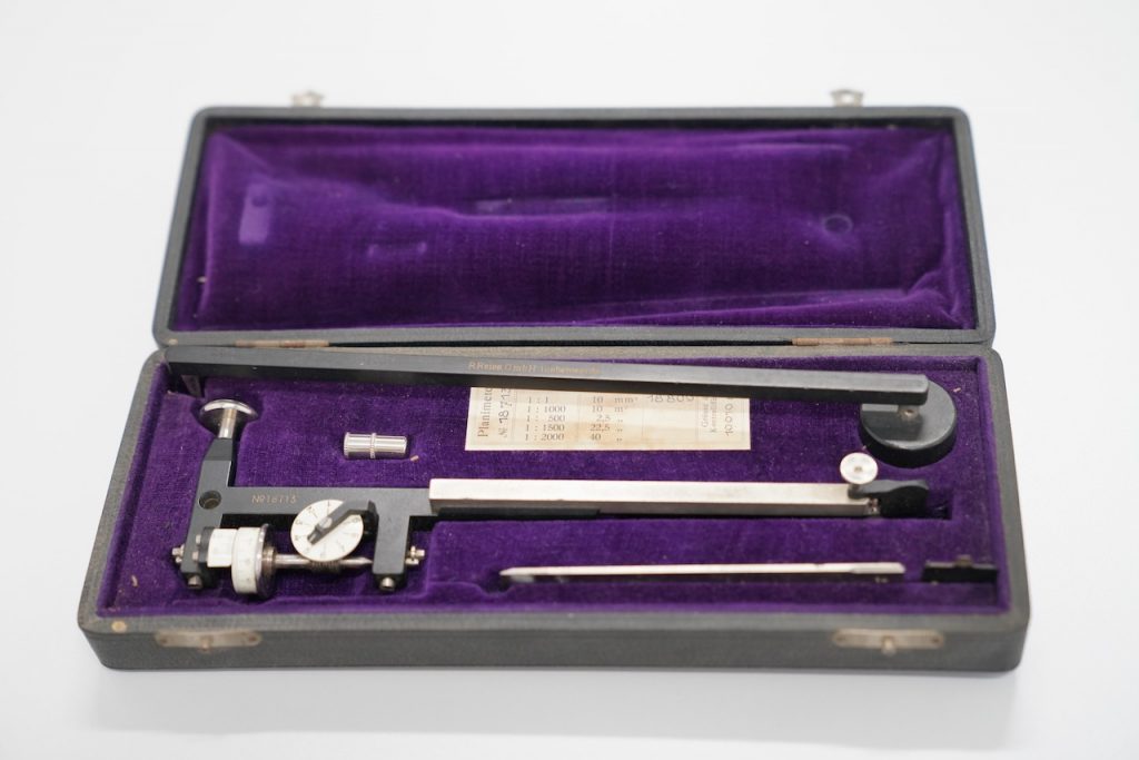 本藏品是刘仙洲副校长生前使用的求积仪,生产厂商是德国的R.Reiss G.m.b.H. Liebenwerda。这家企业创立于1882年,创办人赫尔曼·罗贝尔特·赖斯(Herrmann Robert Reiss,1844–1911)是一位德国测量专家和发明家。