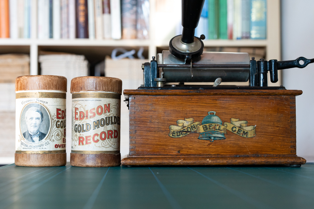 这台蜡筒留声机是由爱迪生·贝尔(Edison Bell)公司于1900年代(不早于1904年)生产的。1892年11月,爱迪生·贝尔公司成立于伦敦,创始人为四位美国发明家:托马斯·爱迪生(Thomas Alva Edison, 1847–1931)、亚历山大·贝尔(Alexander Graham Bell, 1847–1922)、奇切斯特·贝尔(Chichester Alexander Bell, 1848–1924)和查尔斯·泰恩特(Charles Sumner Tainter, 1854–1940) 。该公司负责将爱迪生和贝尔在美国申请的专利用于在英国的留声机生产。由于和美国公司在海外销售权方面的争议,第一批留声机直到1904年才问世出售。起初,爱迪生·贝尔公司的主打产品是蜡筒留声机,1908年开始投产10.5英寸黑胶唱机。1932年,它被德卡(Decca)公司收购。