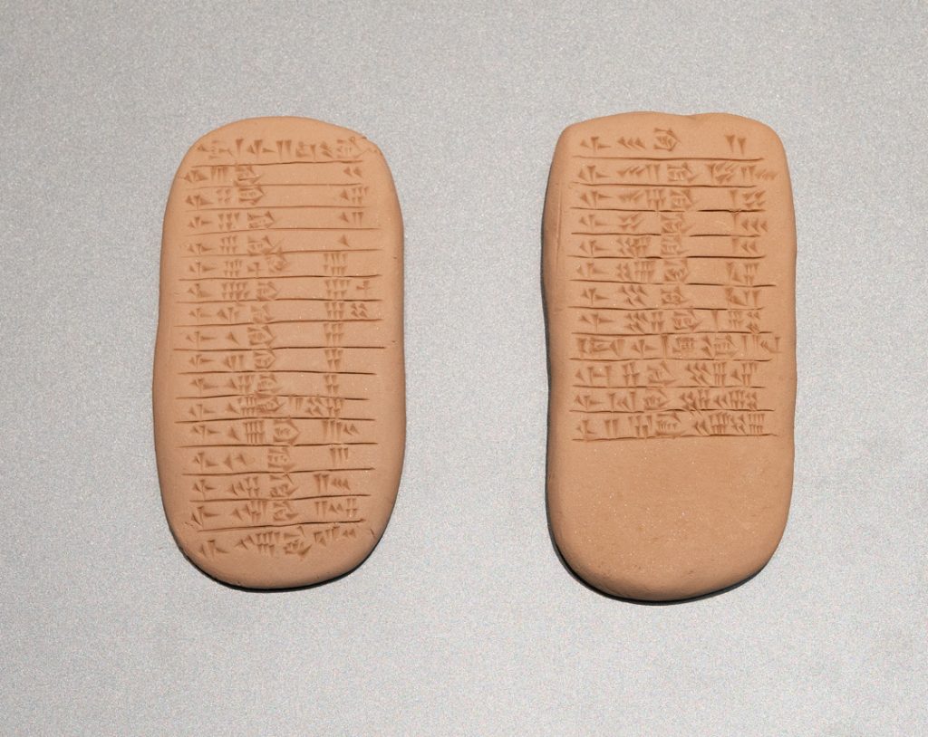 书写技术的发展伴随着数字符号的出现。在古代的两河流域,人们使用粘土制成泥板,其上用楔形文字书写。现存有数以百计的两河数学文献在泥板上保存下来,这一时期已发展出成熟的数字表记法。在古巴比伦,阅读、书写、计算是非常专业的技能,只有寺庙、宫殿和富裕的家庭才会用到,会书写的人形成了书吏这一特殊阶层。训练书吏的基础教育中,一个重要的组成部分是记忆大量倒数表和乘法表,书吏们需要依靠抄写来辅助记忆。从现有的泥板材料可以看出,学生们学习算术有固定的次序和内容,构造倒数表是其中的一步。今人看似基本的乘法,在古巴比伦书吏学校可能要用一年时间来教学,同样也会构造相关的乘法表。这些计算有关的表格可能用于学习时的背诵,也可能用于实际的换算或计算,是人类算术萌芽阶段的重要辅助工具。